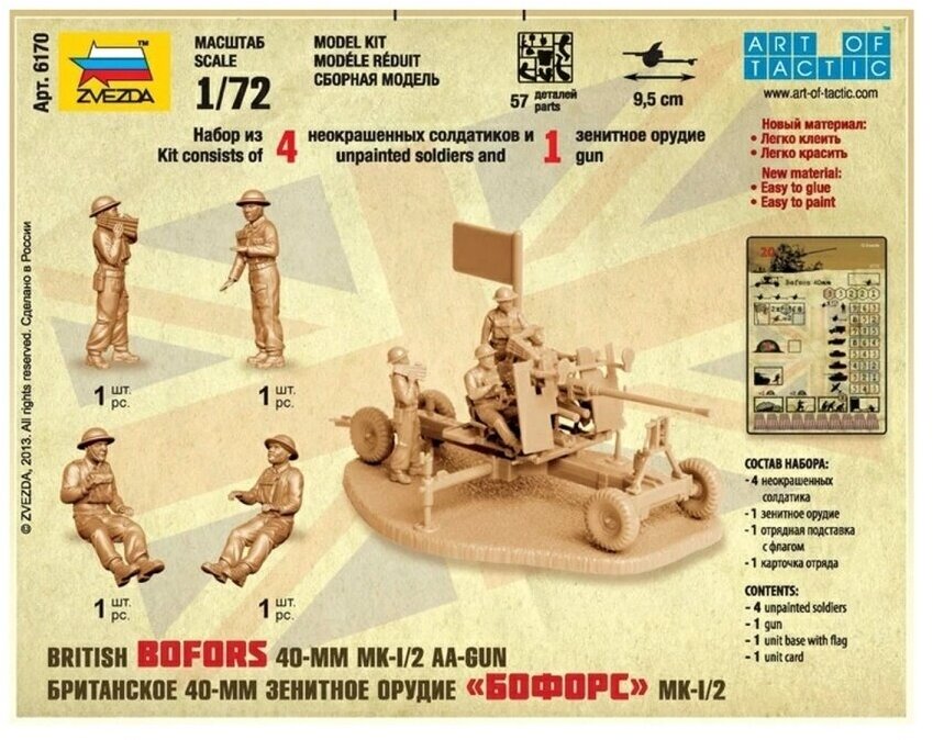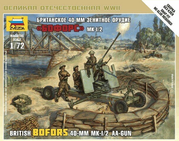 Сборная модель ZVEZDA "Британское 40-мм зенитное "Бофорс" Мк-1/2" 6170
