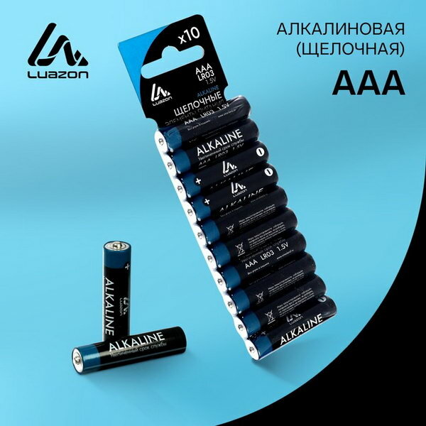 10 цен на Батарейка алкалиновая (щелочная) LuazON, AAA, LR03, блистер, 10 шт