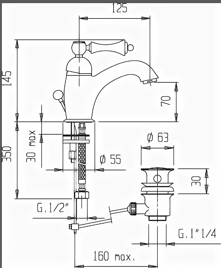 | Длина излива | 125 мм |