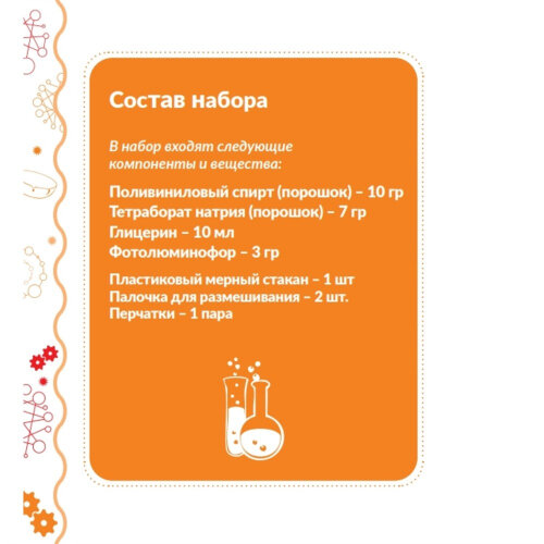 Набор химических экспериментов для детей "Светящийся Лизун" трюки науки