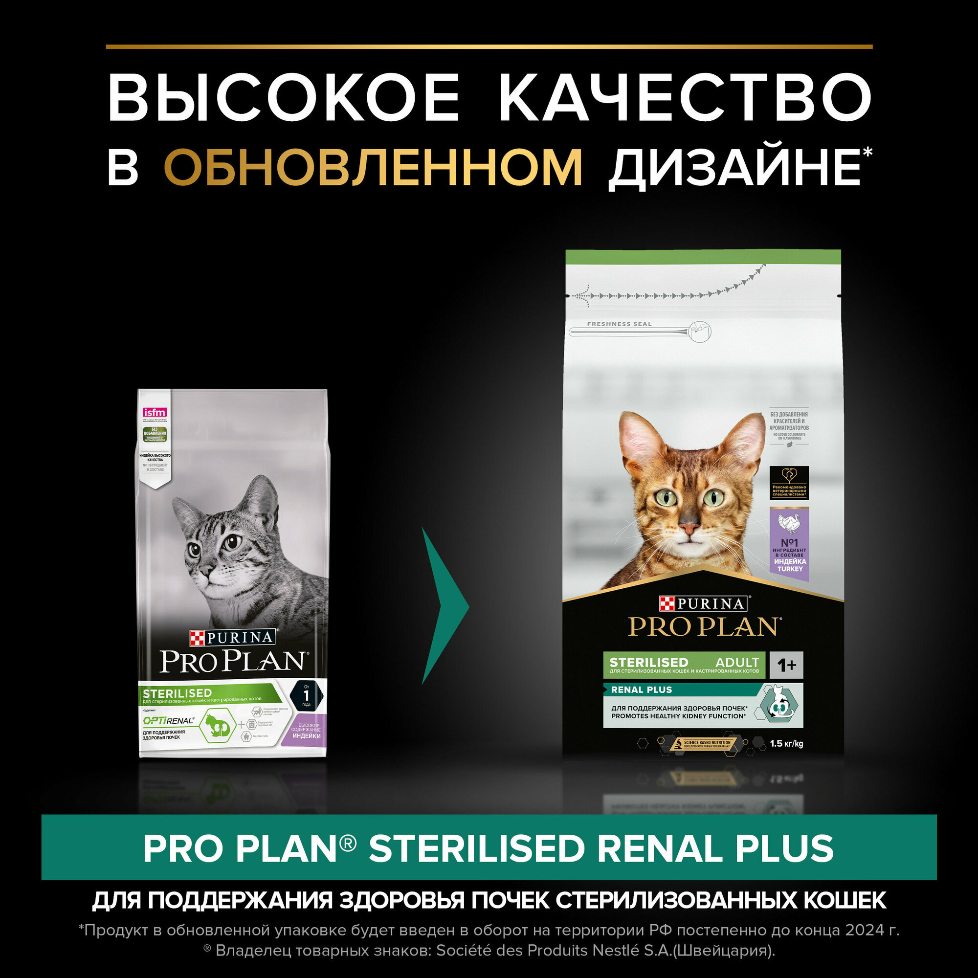 Pro Plan Sterilised OptiRenal Сухой корм для стерил. взр. кошек, с индейкой 1,9кг (1,5кг+400г)