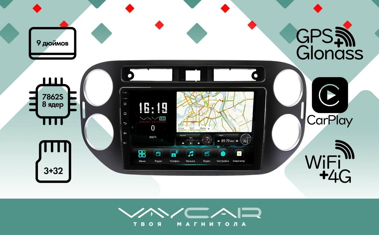 Магнитола Vaycar 09V3 для VOLKSWAGEN Tiguan 2007-2016 (Андроид, 3+32, 8 ядер, WiFi, BT, 4G, GPS, QLED 9") информация: