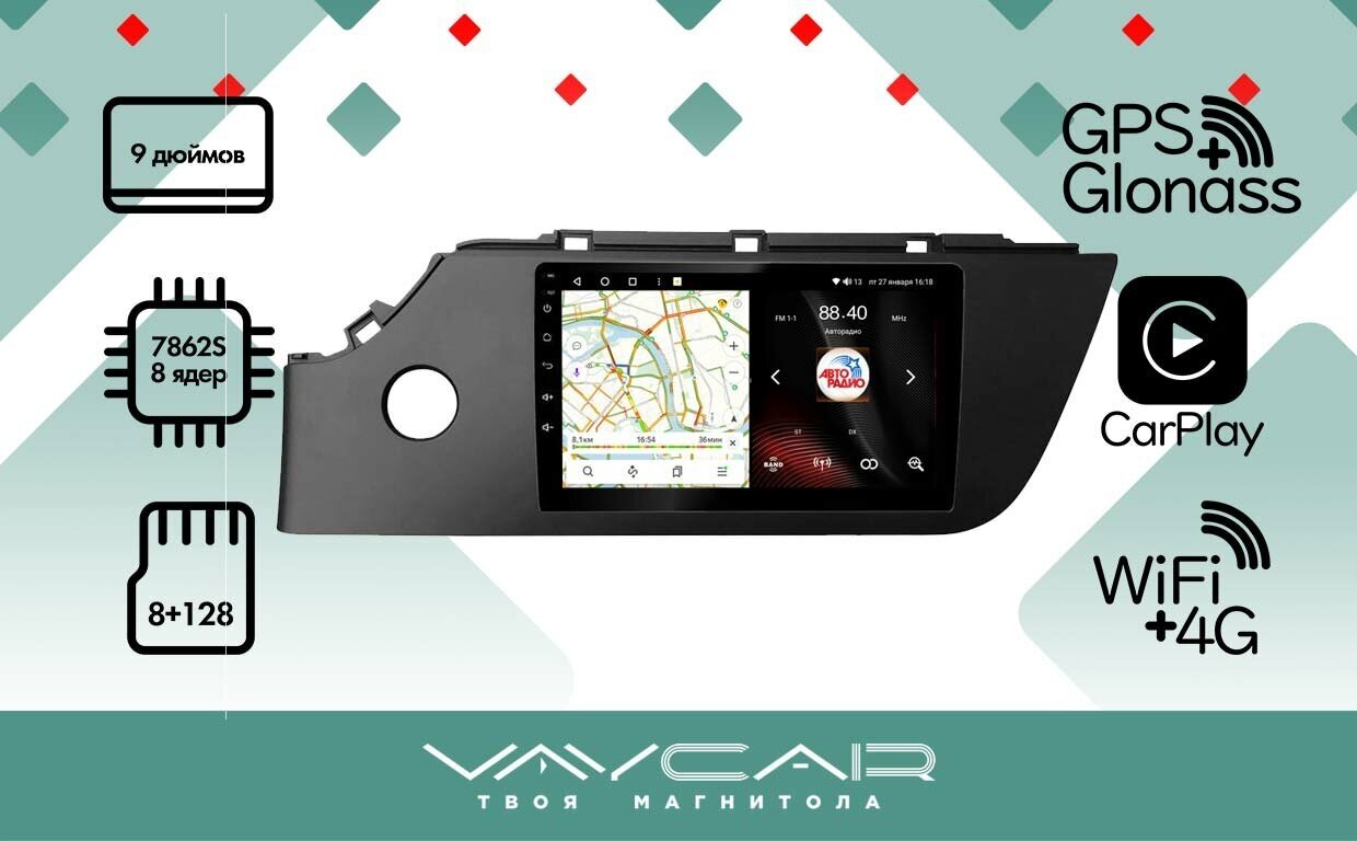 Магнитола Vaycar 09VO4 для KIA Rio 2021+ (Андроид, 4+64, 8 ядер, WiFi, BT, 4G, GPS, QLED 9")