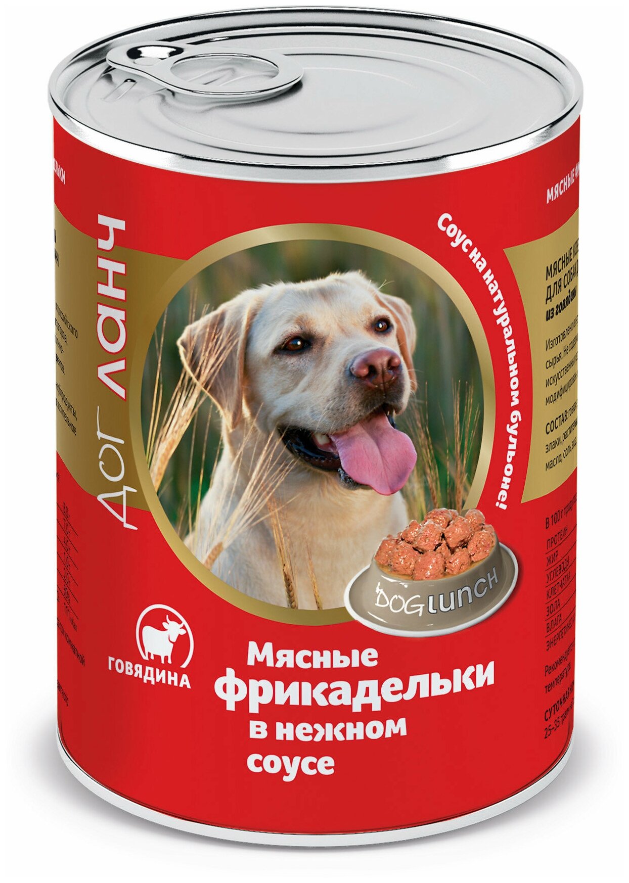 Dog Lunch влажный корм для взрослых собак Фрикадельки в нежном соусе с говядиной, в консервах - 850 г х 6 шт