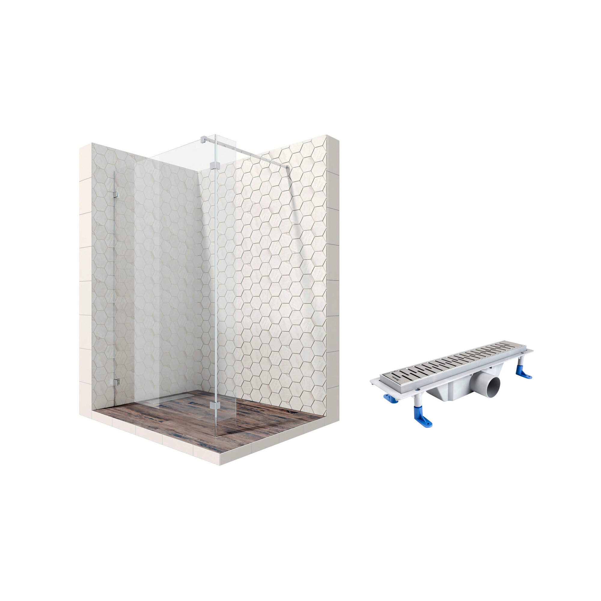 Комплект душевого ограждения (перегородка) со свободным входом с линейным трапом Ambassador Walk-in 15031105-ST5, с EasyClean, 90 х 25 см