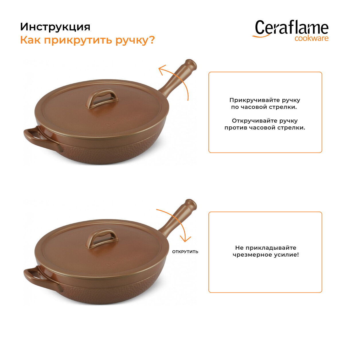 Сковорода глубокая Ceraflame Hammered с керамической крышкой с дополнительной ручкой 28 см, 2.5 л, медный информация: