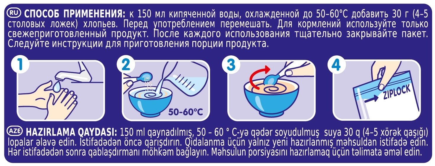 | Состав | сухое молоко 33%, овсяная крупа 29%, рисовая мука 15%, сахар, пюре малины 6% (сахар, мякоть малины, крахмал, пектин), кукурузная мука 4%, олигофруктоза, обогащенная 3% инулина, витамины (ретинола ацетат, холекальциферол, токоферола ацетат, тиамин гидрохлорид, рибофлавин, пиридоксин гидрохлорид, аскорбиновая кислота, D-пантотенат кальция, фолиевая кислота, никотинамид, фитоменадион, цианокобаламин, D-биотин) и минеральные вещества (железа дифосфат, калия йодид, цинка сульфат, карбонат кальция), экстракт мелиссы 0,2% |