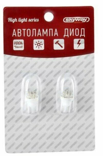 Лампа светодиод 12V Т10(W5W) SKYWAY 7диодов без цоколя 1-контактная Белая 2шт (S08201129) информация: