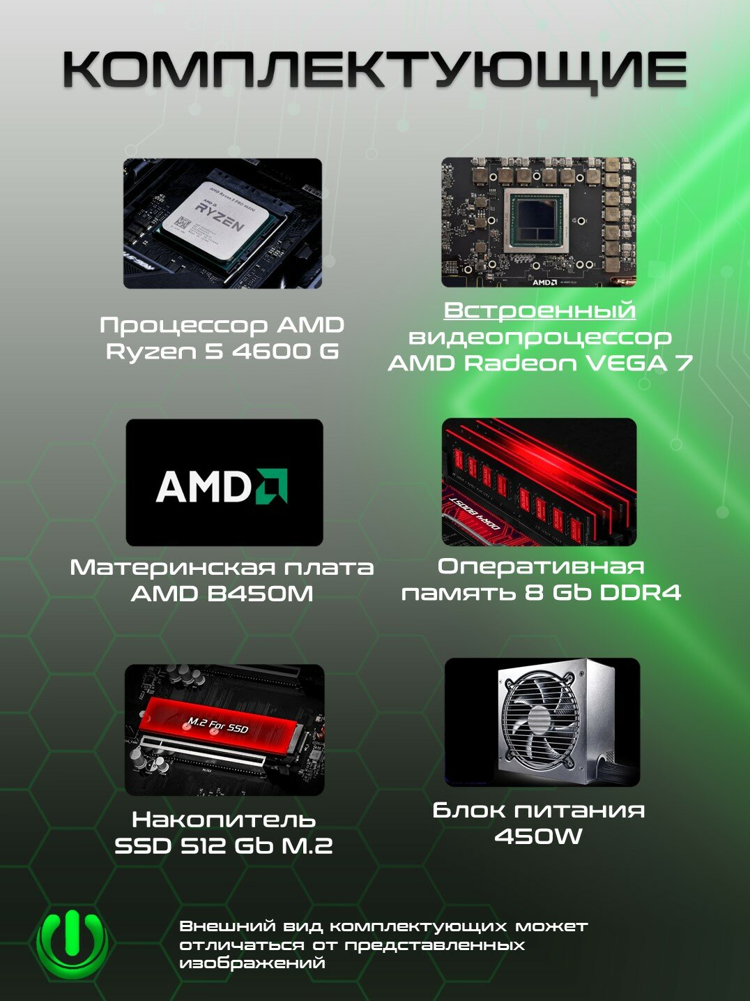 Игровой компьютер PREON Omega 2.0 (AMD Ryzen 5 4600G,AMD B450M,8Gb DDR4,SSD 256Gb,AMD Radeon VEGA 7,450W,Windows10 Trial) информация: