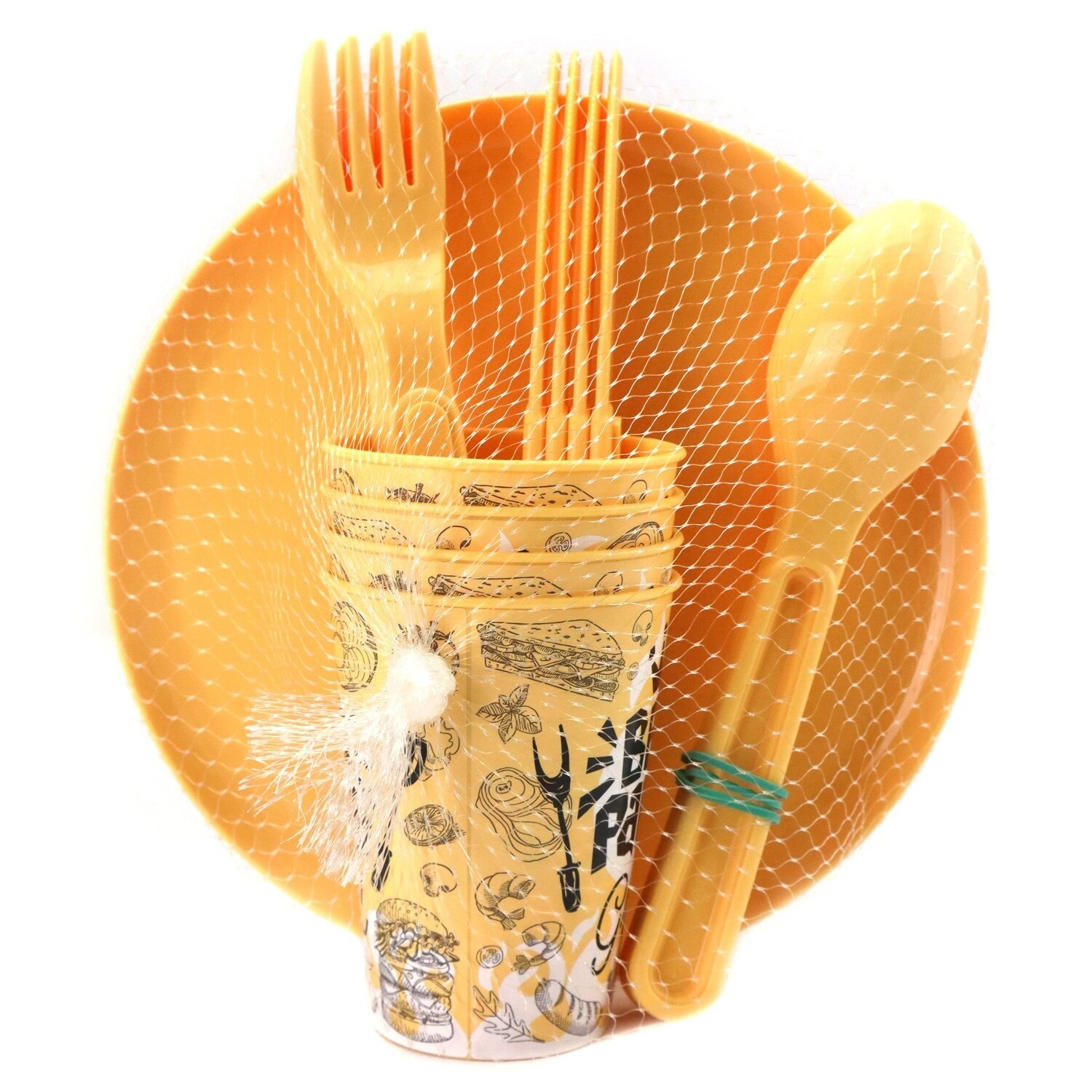 Набор для пикника с декором, 20 предметов на 4 персоны, (бледно-желтый)