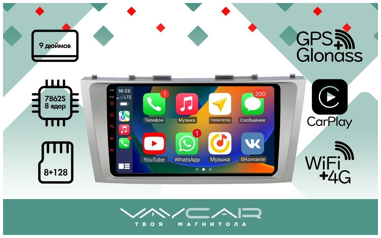 Магнитола Vaycar 09VO8 для TOYOTA Camry V40 2006-2011 (Андроид, 8+128, 8 ядер, WiFi, BT, 4G, GPS, QLED 9") информация: