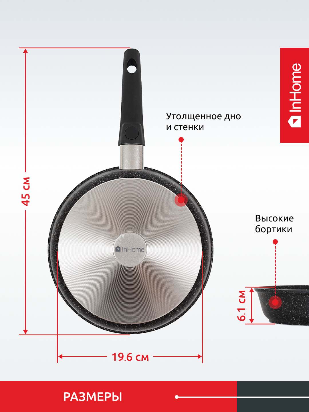 Сковорода InHome классическая литая толстостенная с антипригарным покрытием, съемная ручка