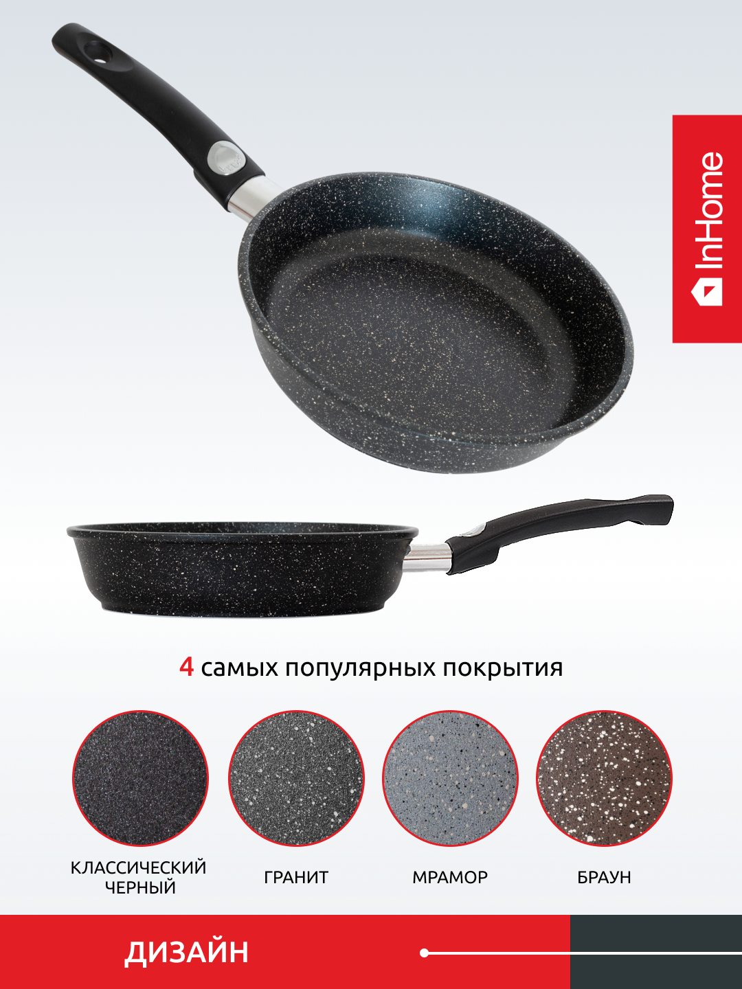 Сковорода InHome классическая литая толстостенная с антипригарным покрытием, съемная ручка