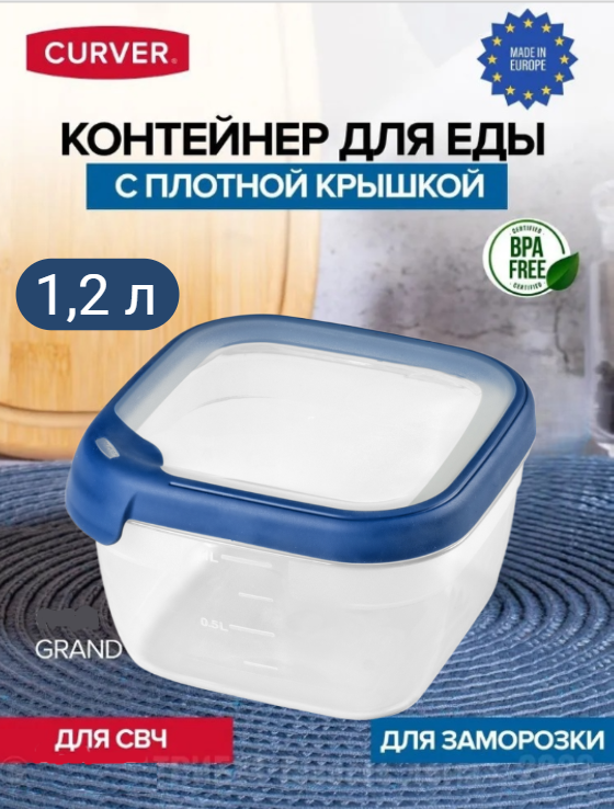 10 цен на Емкость для морозилки и СВЧ GRAND CHEF 1.2л квадратный синий CURVER 00014-831-00