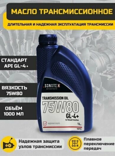 Масло трансмиссионное Sonatex 75W80 GL-4+ Renault Gearbox полусинтетическое 1 л информация: