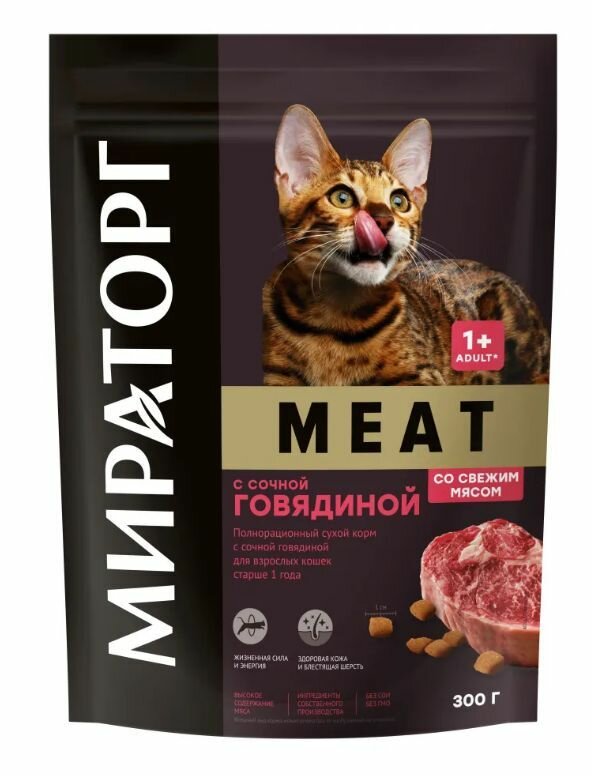 Сухой полнорационный корм Мираторг WINNER MEAT 10х300гр для взрослых кошек старше 1 года всех пород с сочной говядиной информация: