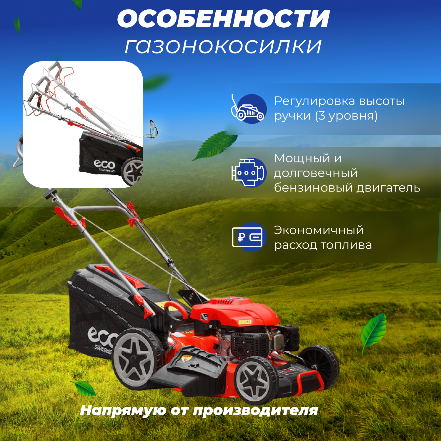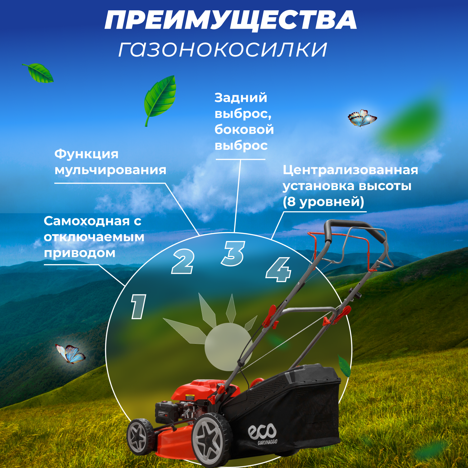 Газонокосилка ECO бензиновая LG-734 информация: