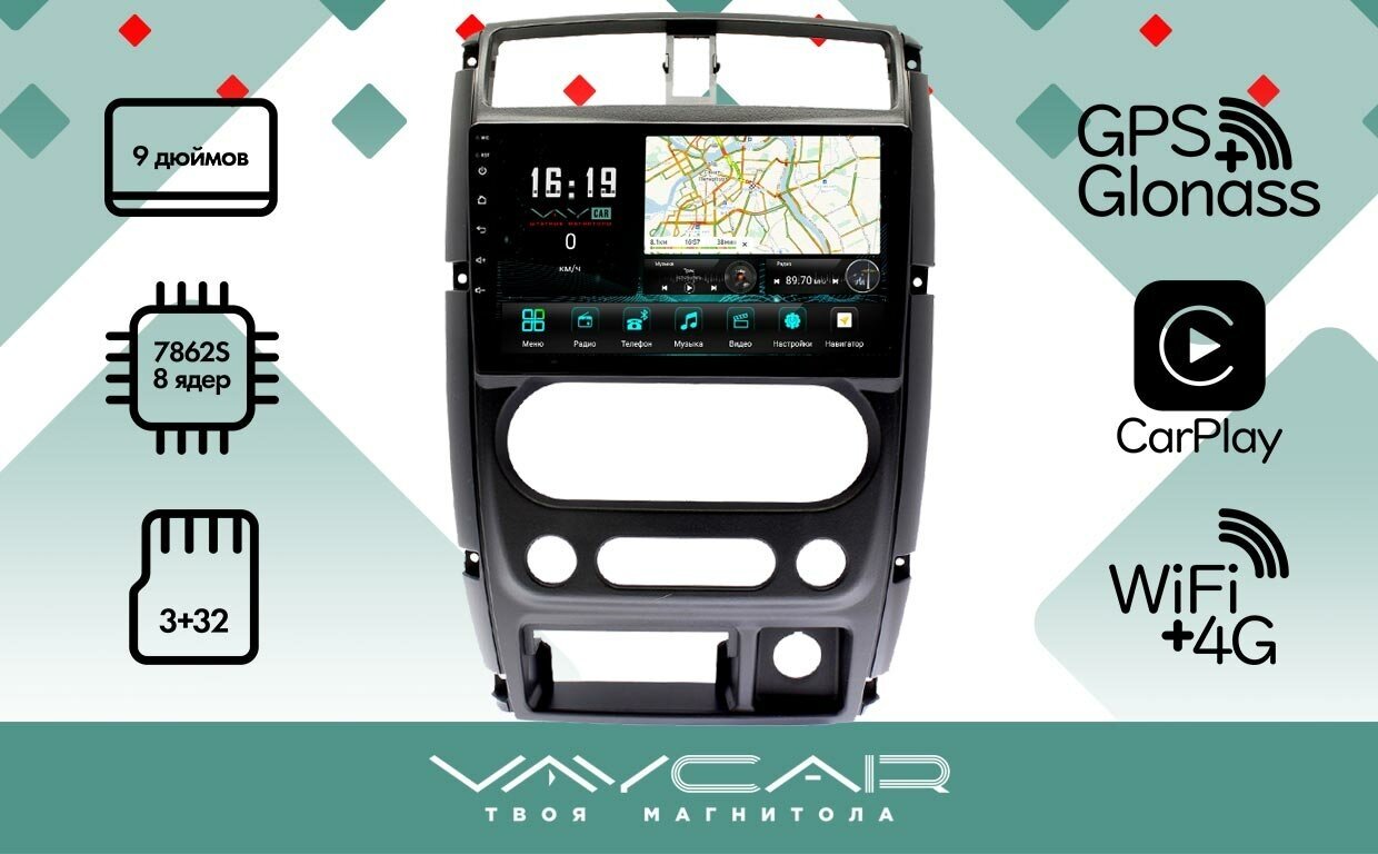 Магнитола Vaycar 09VO4 для SUZUKI Jimny 2005 - 2019 (Андроид, 4+64, 8 ядер, WiFi, BT, 4G, GPS, QLED 9")
