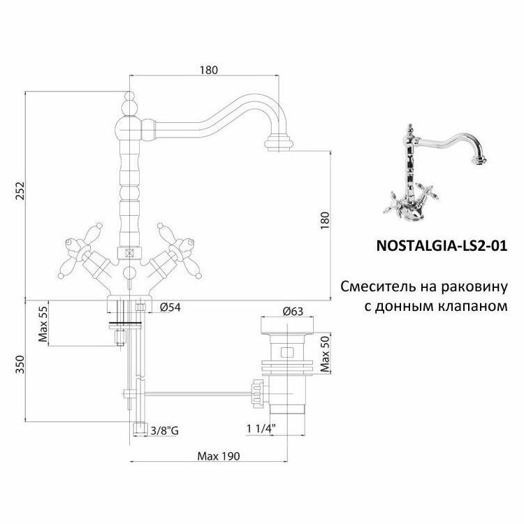 Смеситель для раковины Cezares Nostalgia с донным клапаном (Nostalgia-LS2-02)