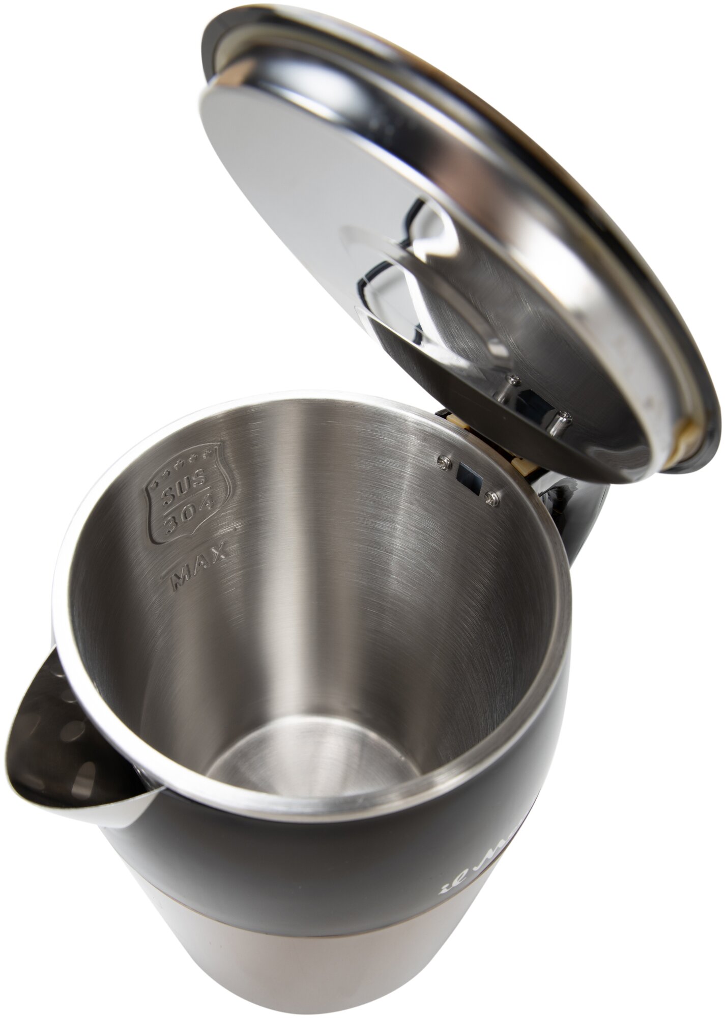 Чайник электрический Премиум с адиабатным покрытием, Контактная группа (электроника) STRIX, Не нагревающийся, Полностью из нержавеющей стали, Литая стальная колба внутри, Объем 1,8 л., il Monte EK-1801 ANTHRACITE