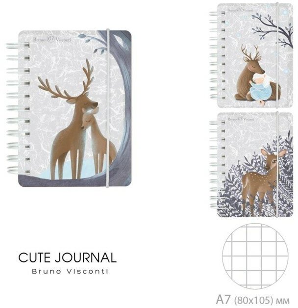Блокнот "CUTE JOURNAL" А7, 80 Л. на гребне С резинкой "FOREST DREAM" 3 вида, клетка. Цена за 1 шт.