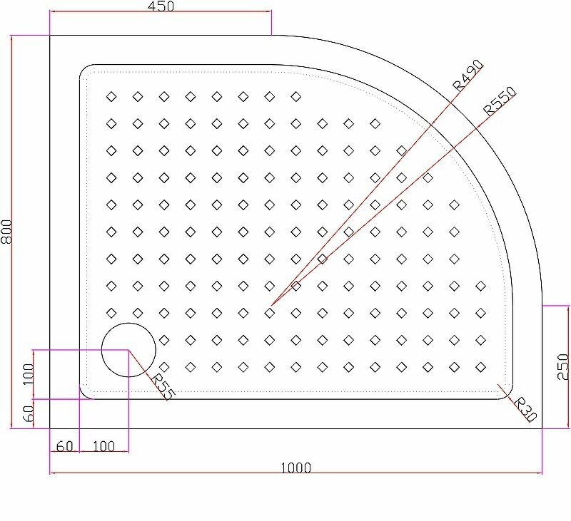 Акриловый душевой поддон Cezares Tray 1000x800x150 мм Tray-A-Rh-100/80-550-15-W-R