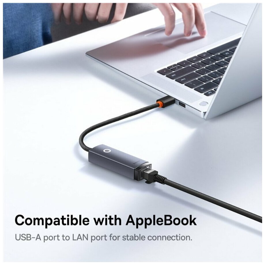 Сетевой адаптер Baseus Lite Series Ethernet Adapter USB-A to RJ45 LAN Port (100Mbps Aluminum Alloy) Grey (WKQX000013)