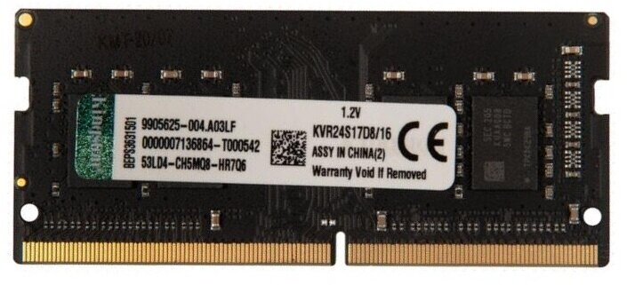 KVR24S17S8/16 Оперативная память для ноутбука SO-DIMM DDR4, 16 Гб, 2400 МГц (PC-19200), Kingston информация: