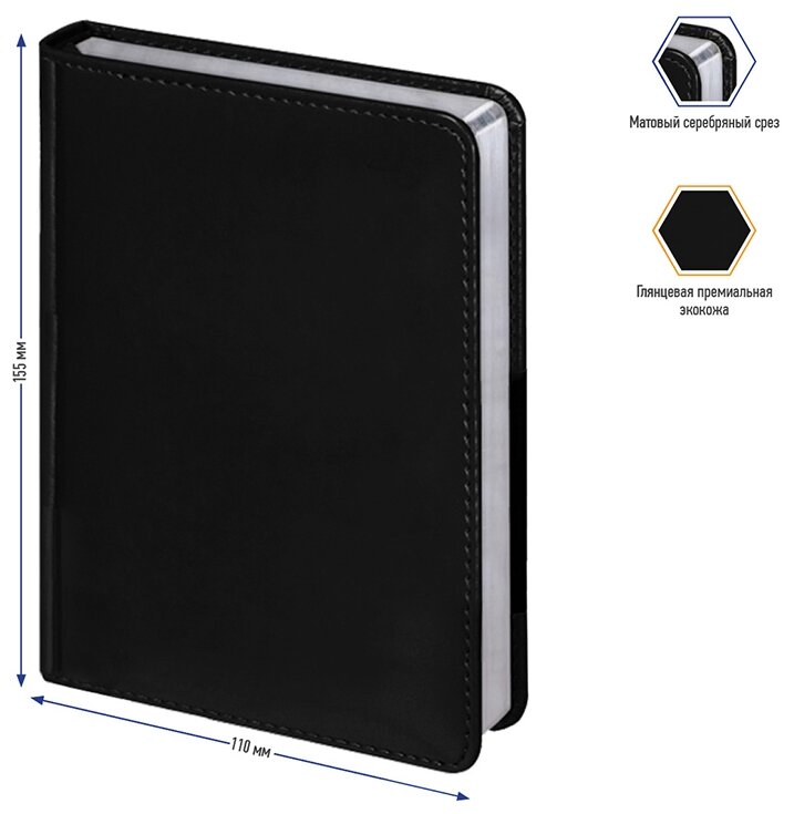 Ежедневник недатированный А6, 160 листов, Berlingo "Silver Pristine". Блокнот/ планер/ записная книжка в линейку, под кожу, серебряный срез, черный, в подарок 466 ₽