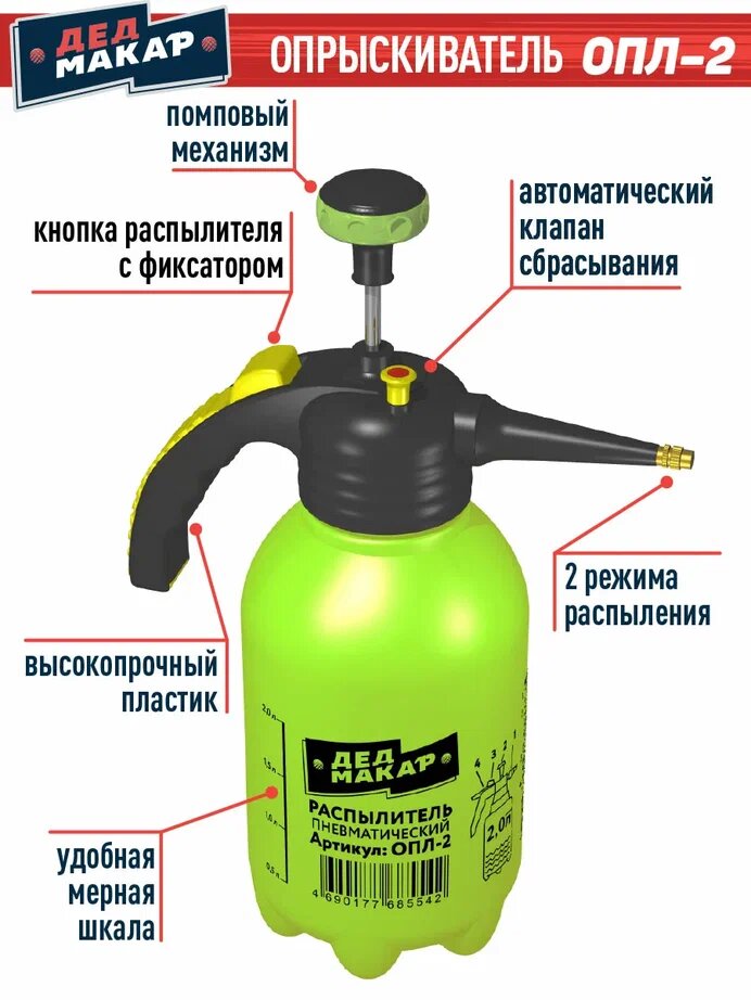 Дед Макар Опрыскиватель пневматический ОПЛ-2, 2 л 00-00015380 информация:
