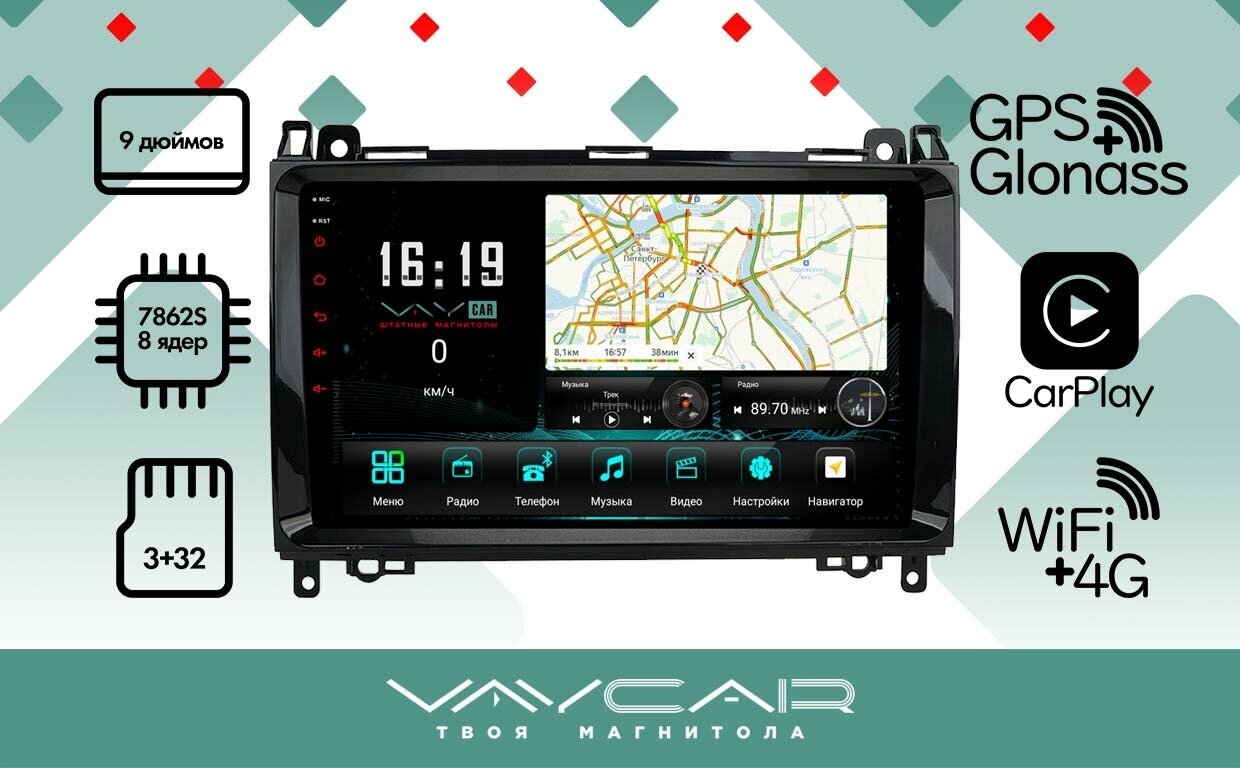 Магнитола Vaycar 09V3 для MERCEDES Sprinter 2006-2017 (Андроид, 3+32, 8 ядер, WiFi, BT, 4G, GPS, QLED 9") информация:
