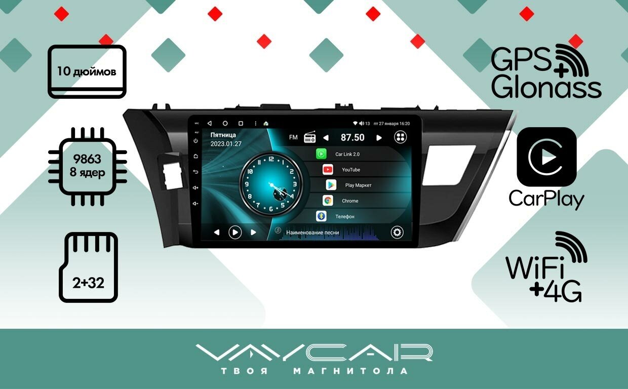 Магнитола Vaycar 10V2 для TOYOTA Corolla E170 2014-2016 (Андроид, 2+32, 8 ядер, WiFi, BT, 4G, GPS, QLED 10") информация: