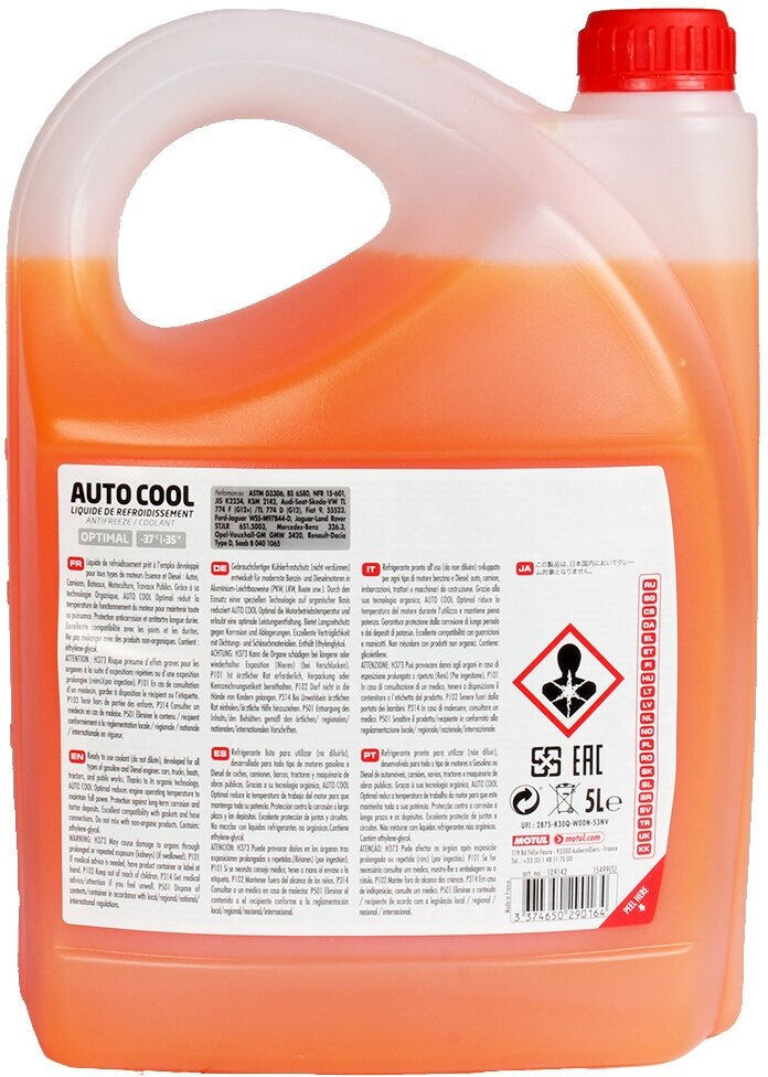 Motul Auto Cool Optimal (5l)_антифриз! Оранжевый -37c, Флуоресцентный Готовый, G12, G12+ Motul Арт. 109142 MOTUL арт. 109142