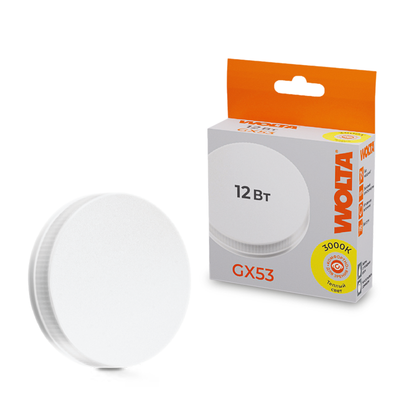 Светодиодная лампа WOLTA 25Y75R12GX53 12Вт 3000K GX53 информация: