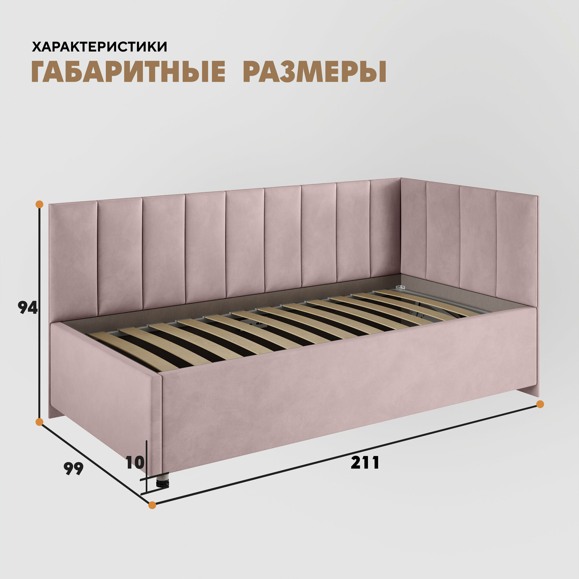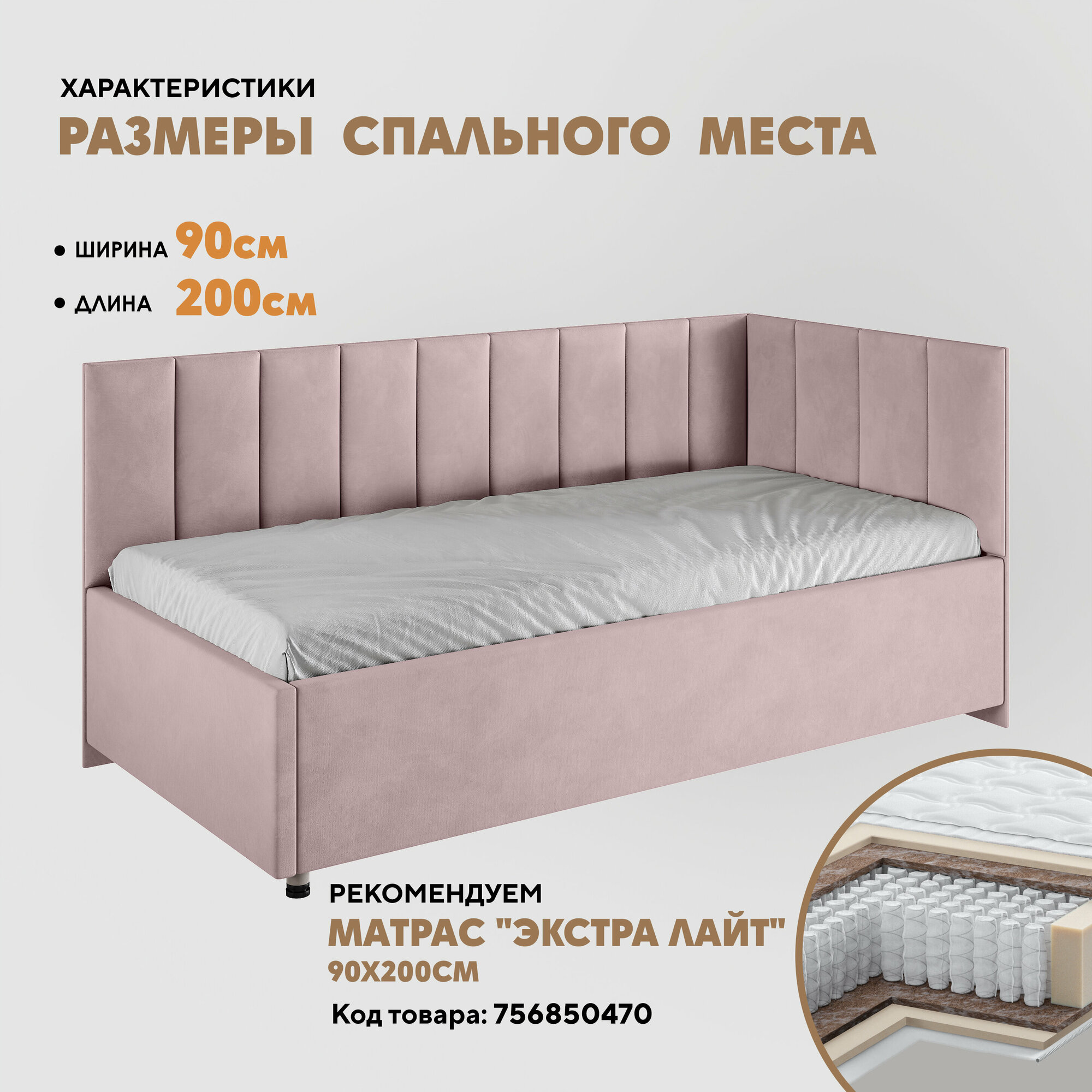 Кровать "Герда Литл" 90х200 (Velutto 11) угол справа информация: