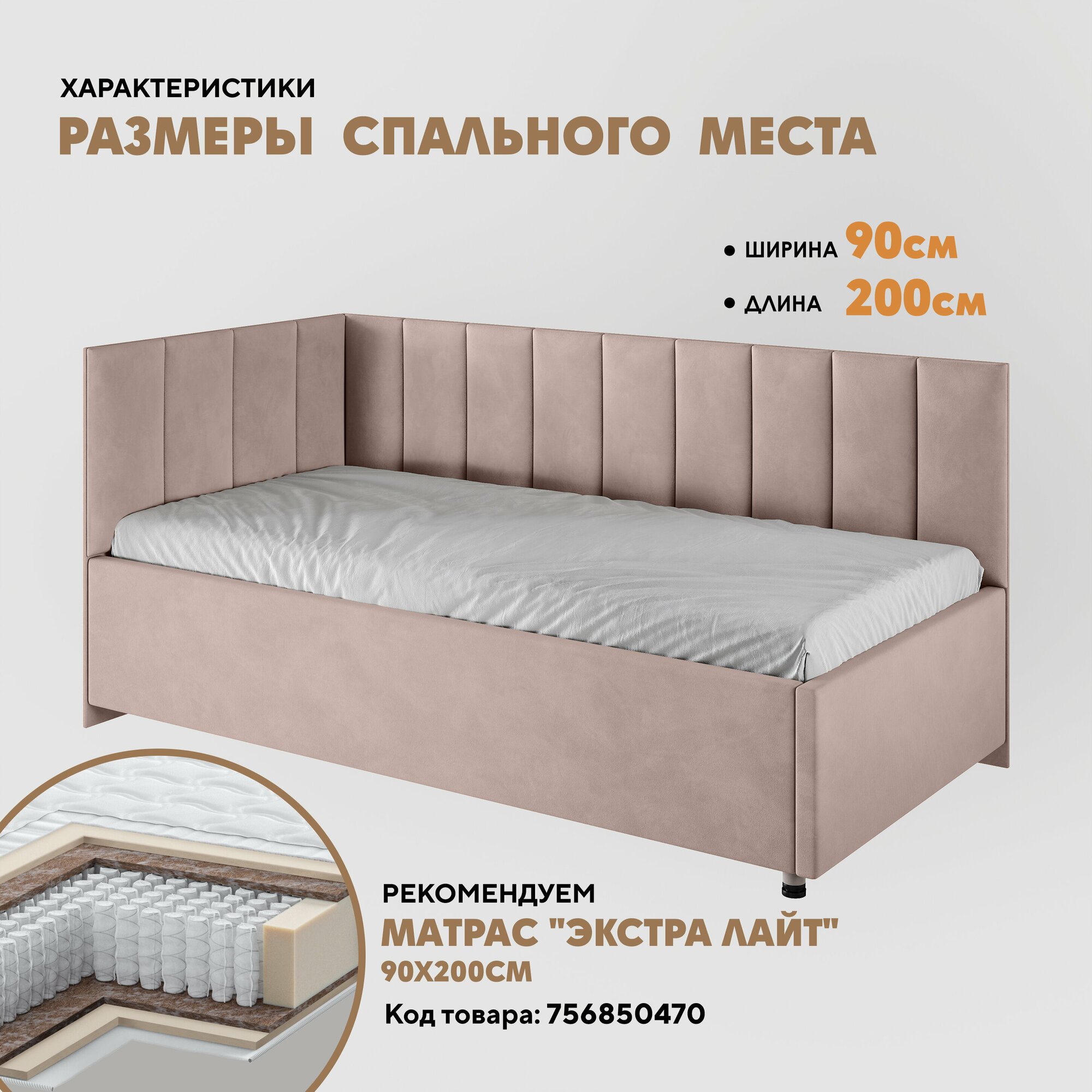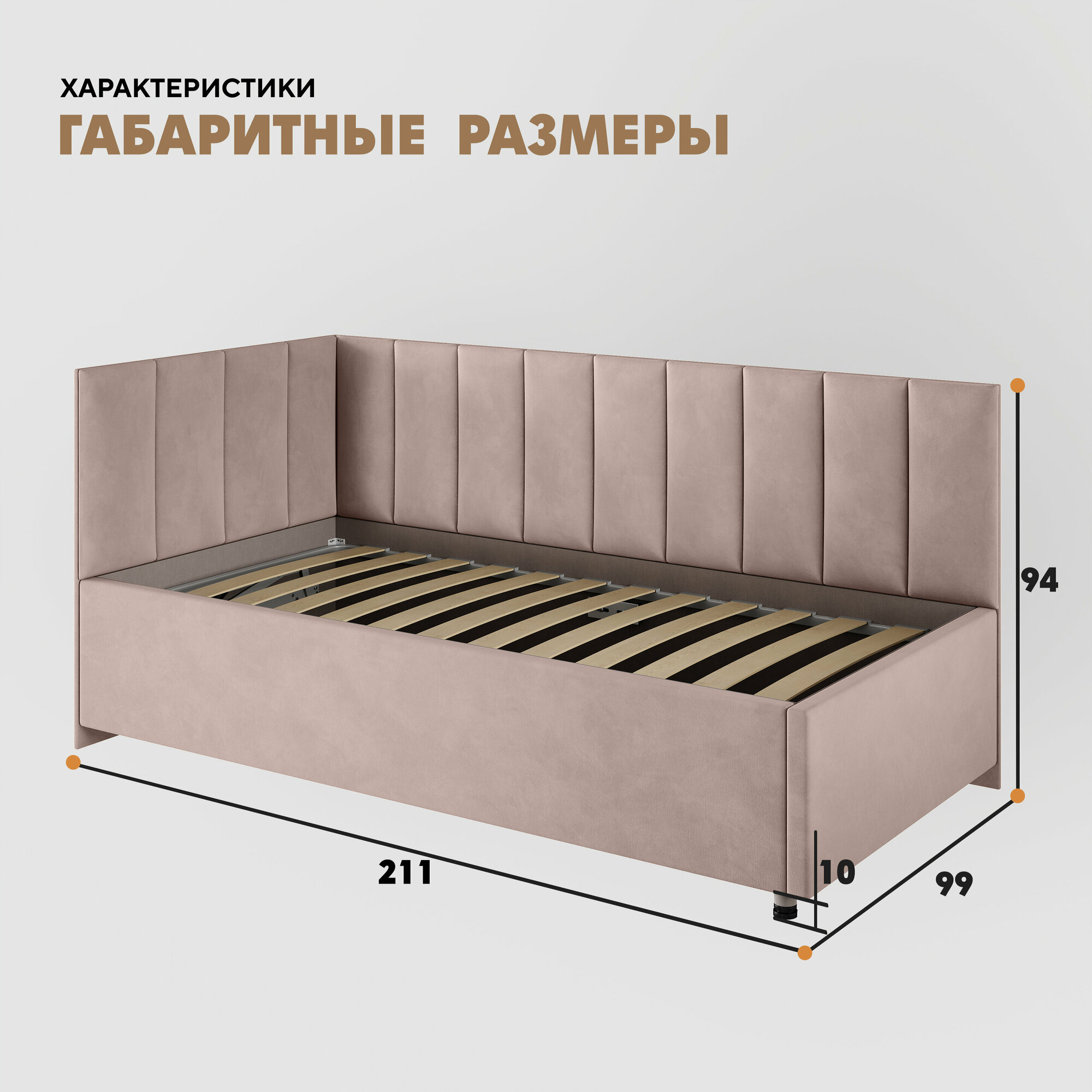 Кровать "Герда Литл" 90х200 (Velutto 06) угол слева информация: