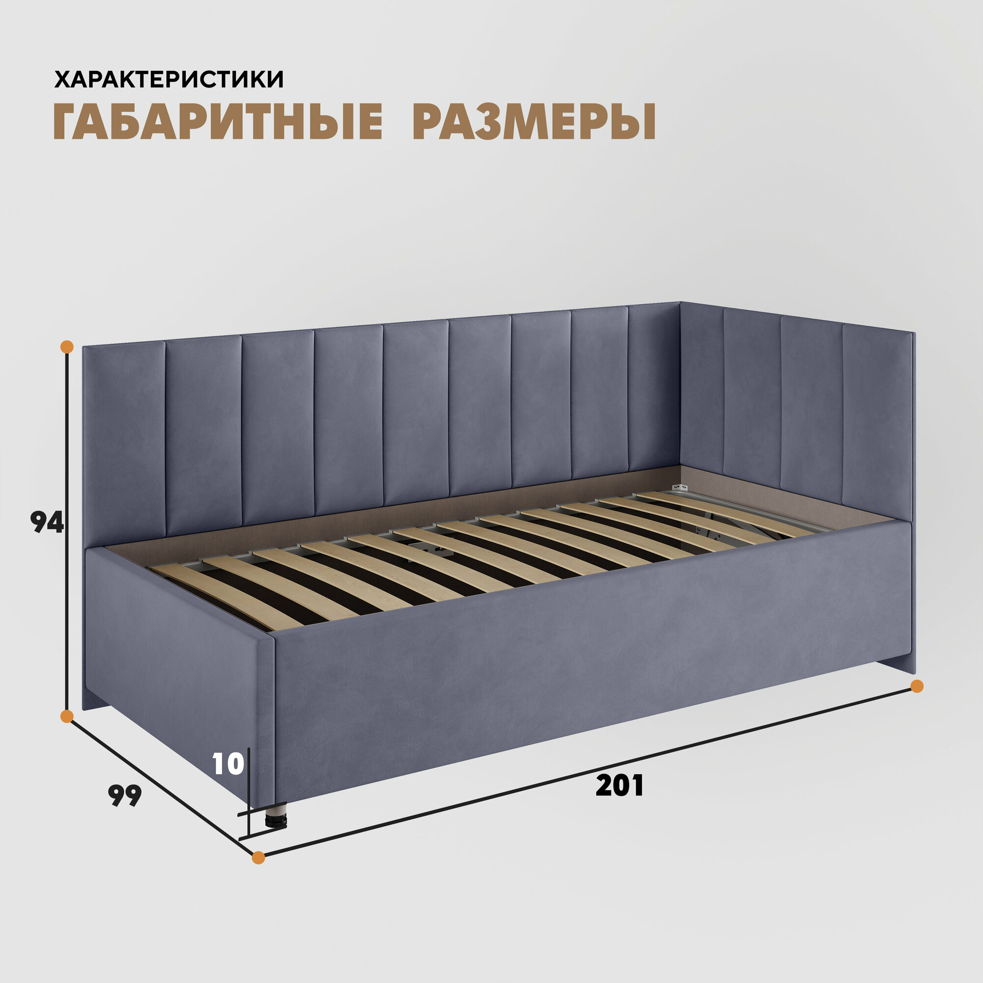 Кровать "Герда Литл" 90х190 (Velutto 48) угол справа информация: