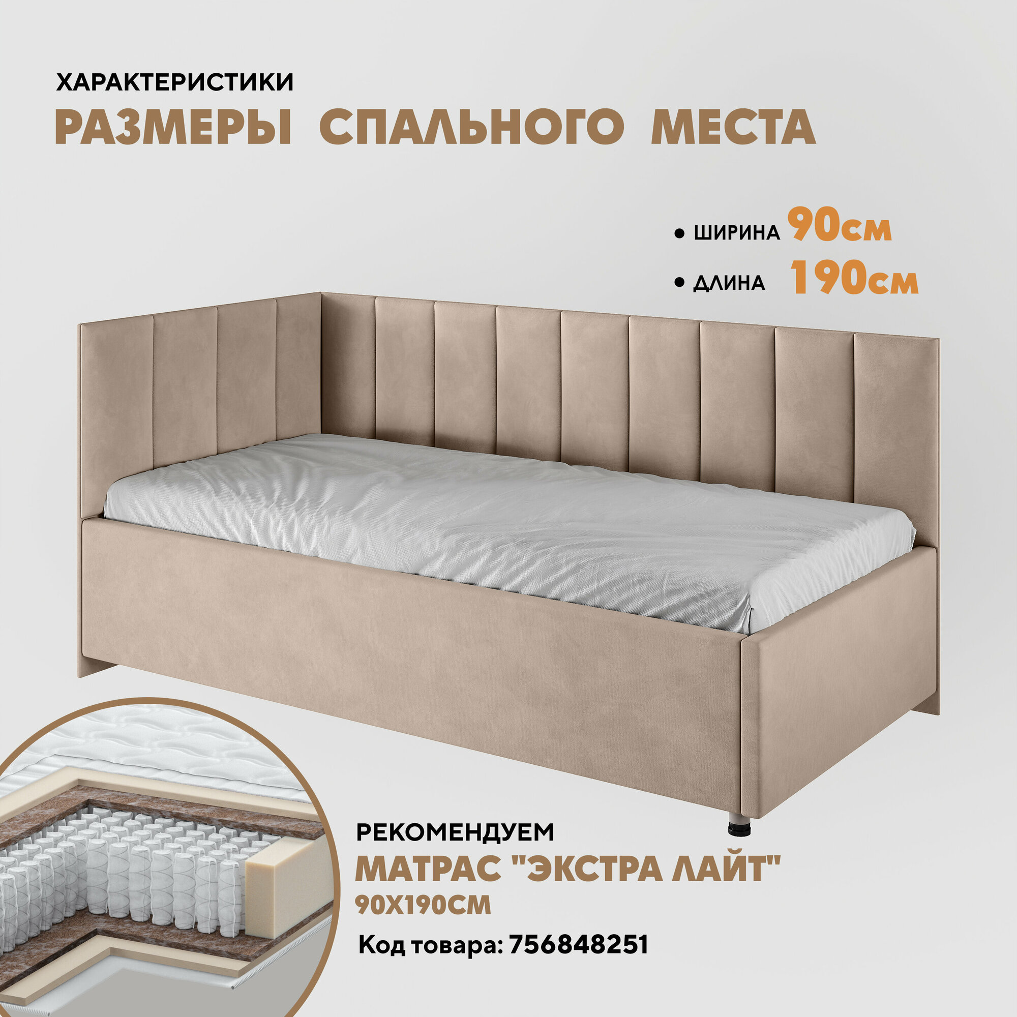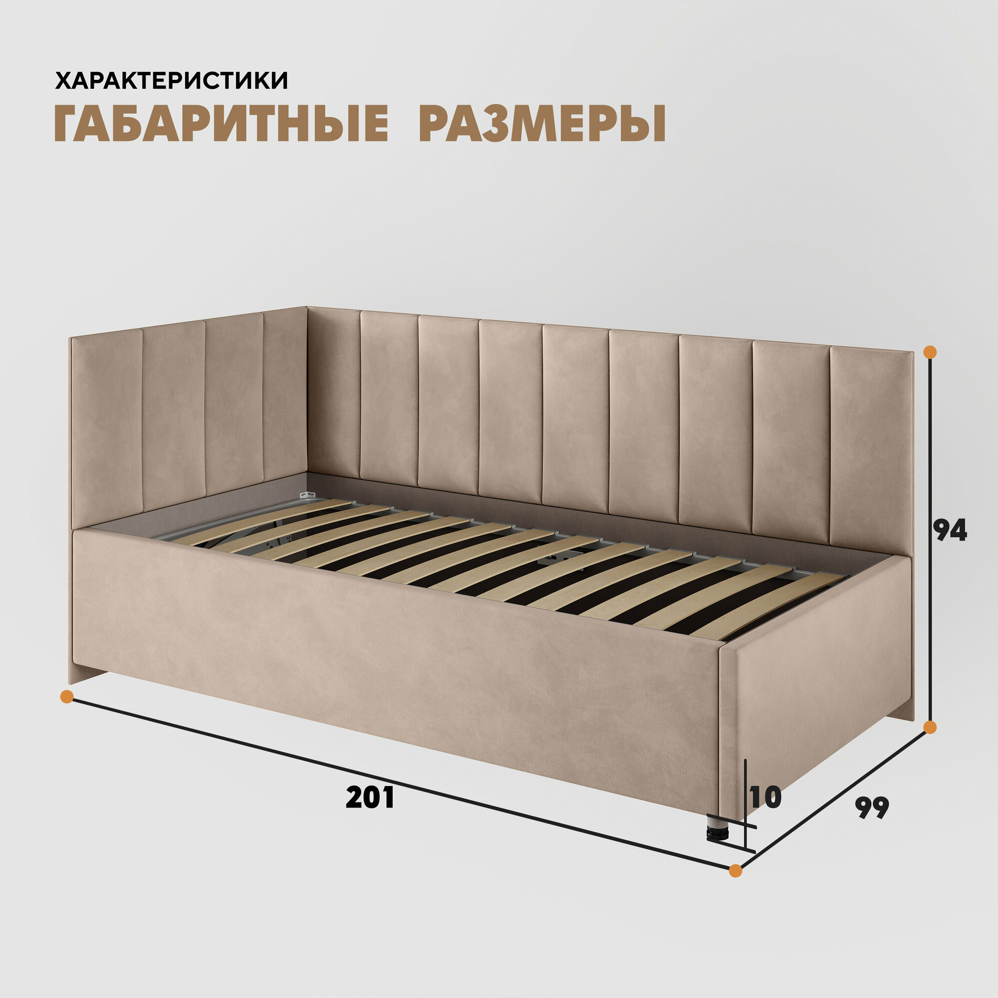 Кровать "Герда Литл" 90х190 (Velutto 05) угол слева информация: