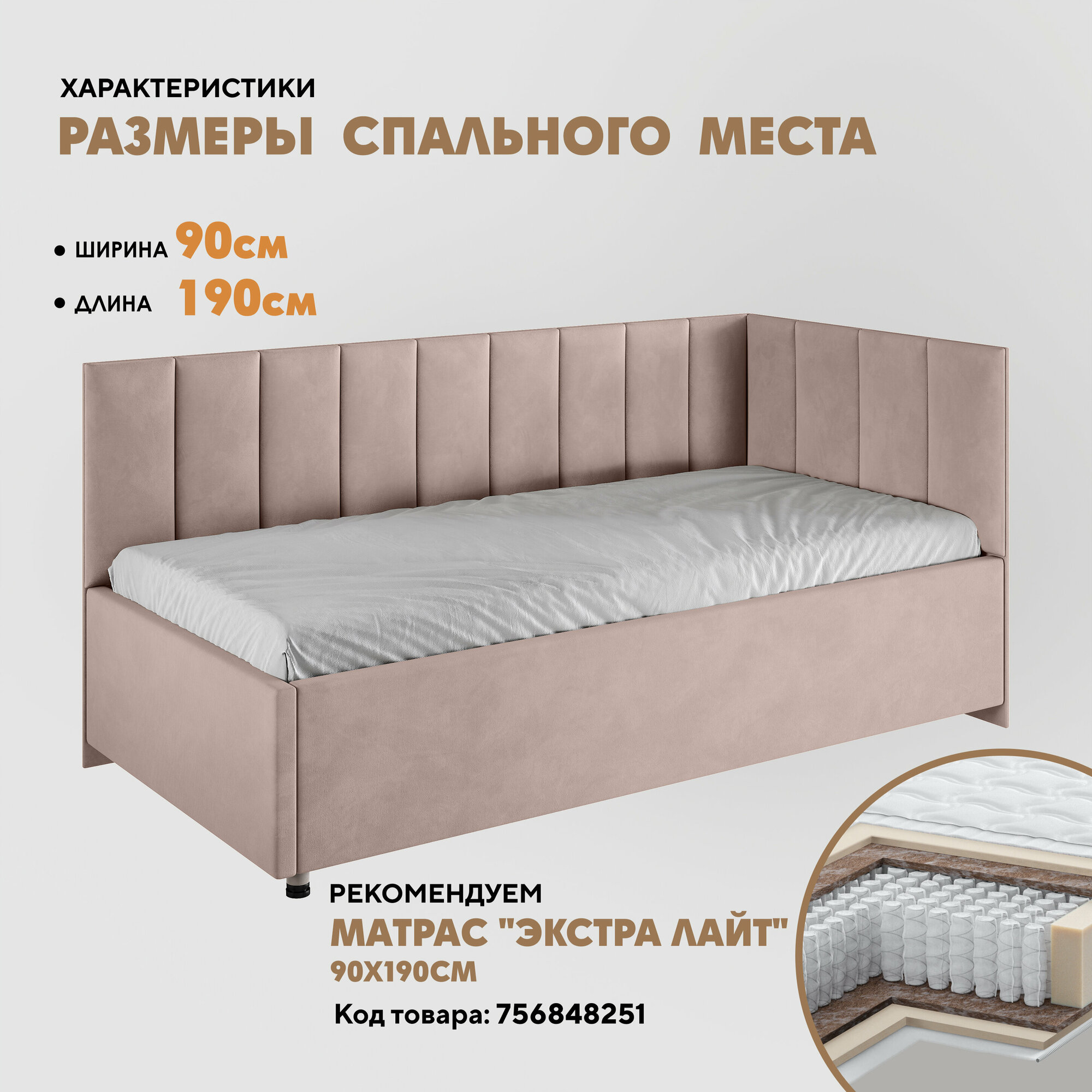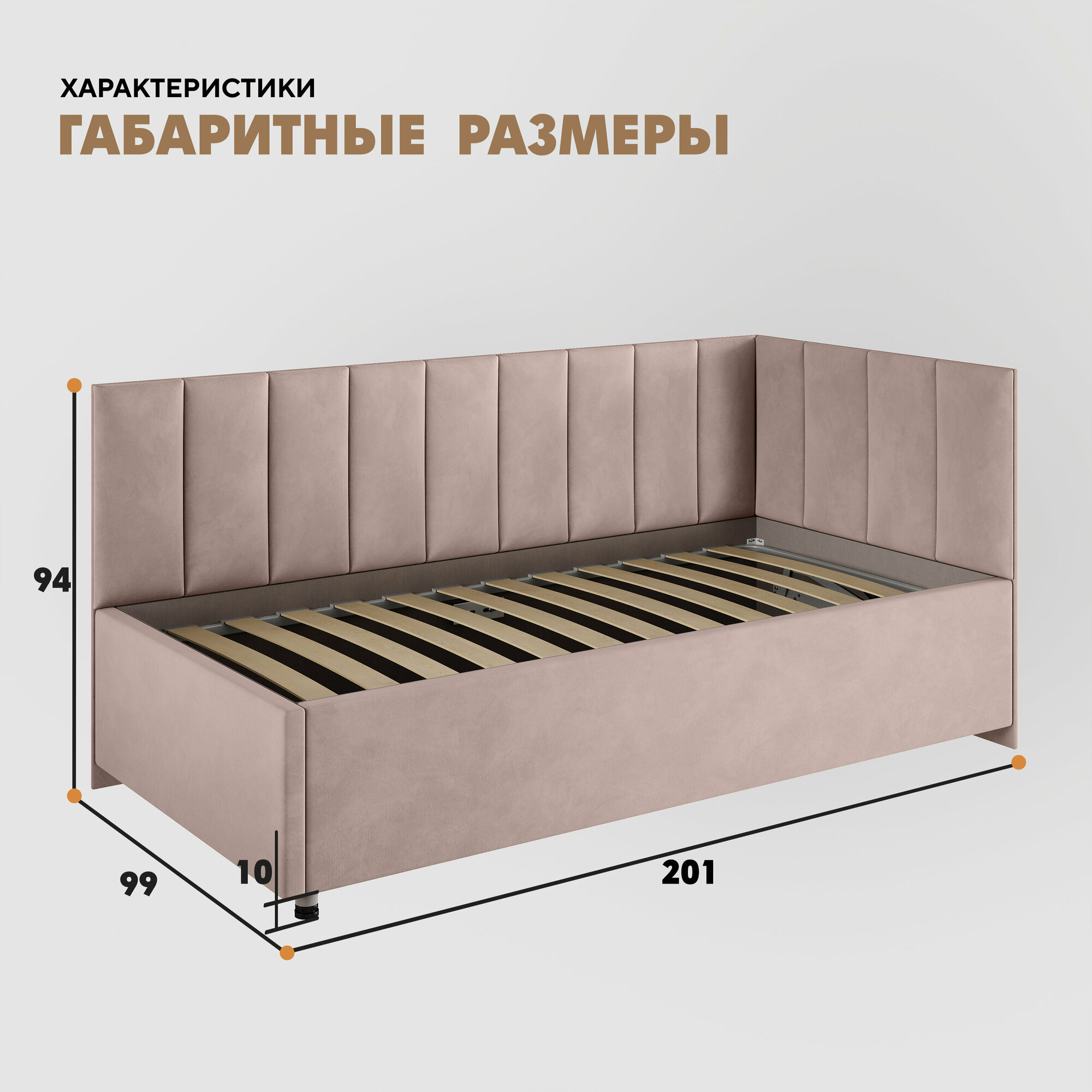 Кровать "Герда Литл" 90х190 (Velutto 06) угол справа информация: