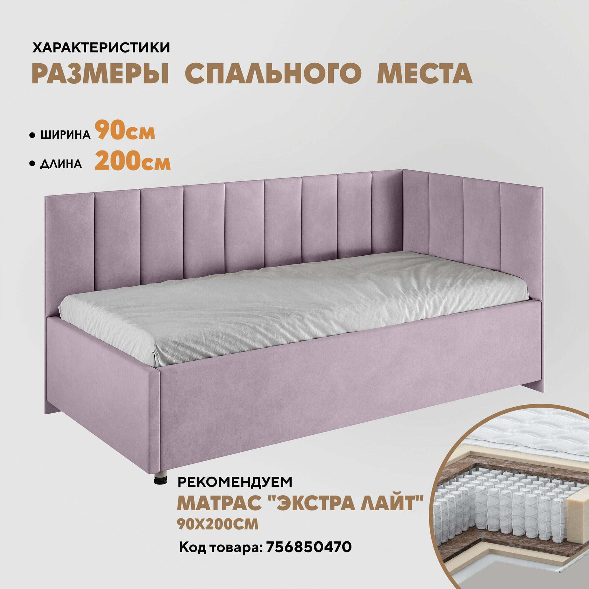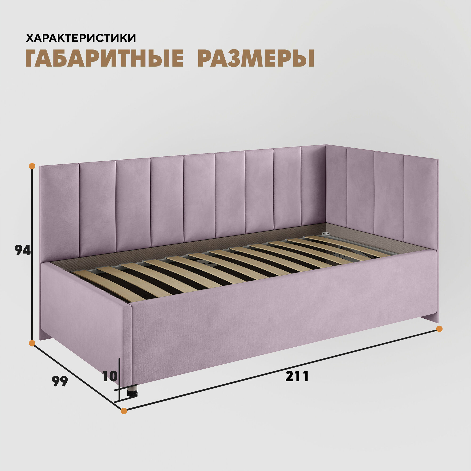 Кровать "Герда Литл" 90х200 (Velutto 10) угол справа информация: