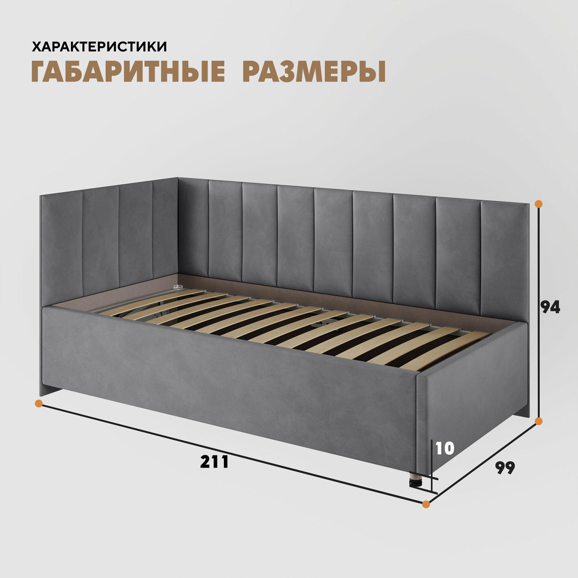 Мягкий диван кровать детская/ подростковая софа с подъемным механизмом асти 90х200 правая
