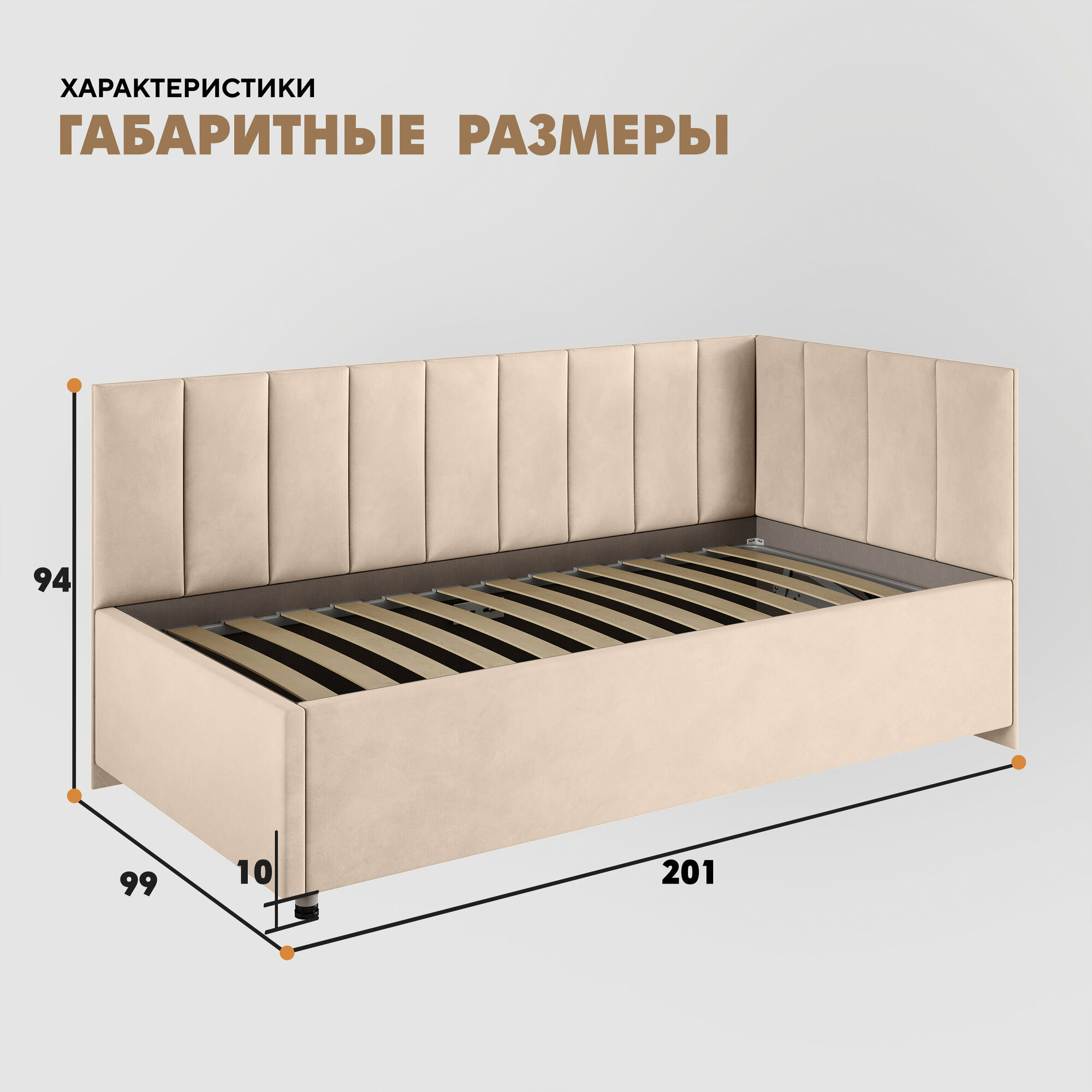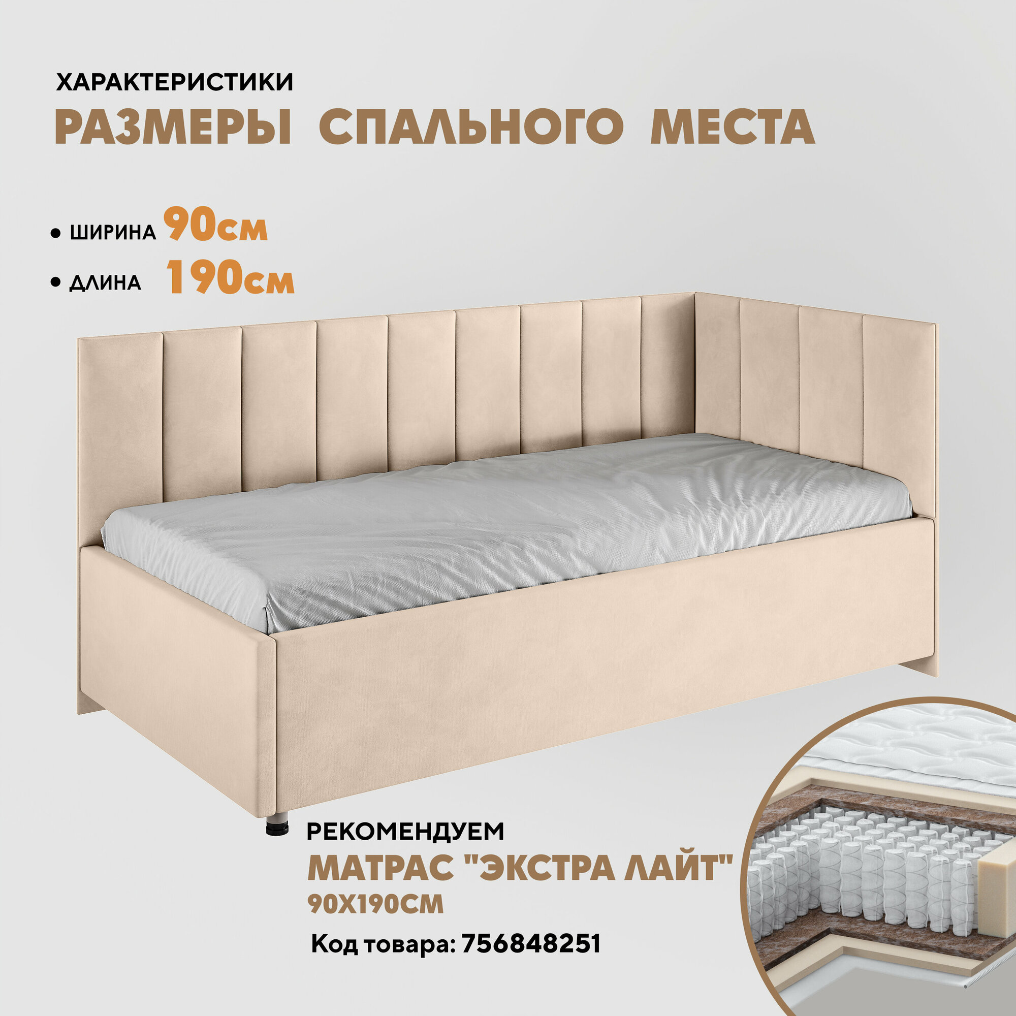 Кровать "Герда Литл" 90х190 (Velutto 18) угол справа информация: