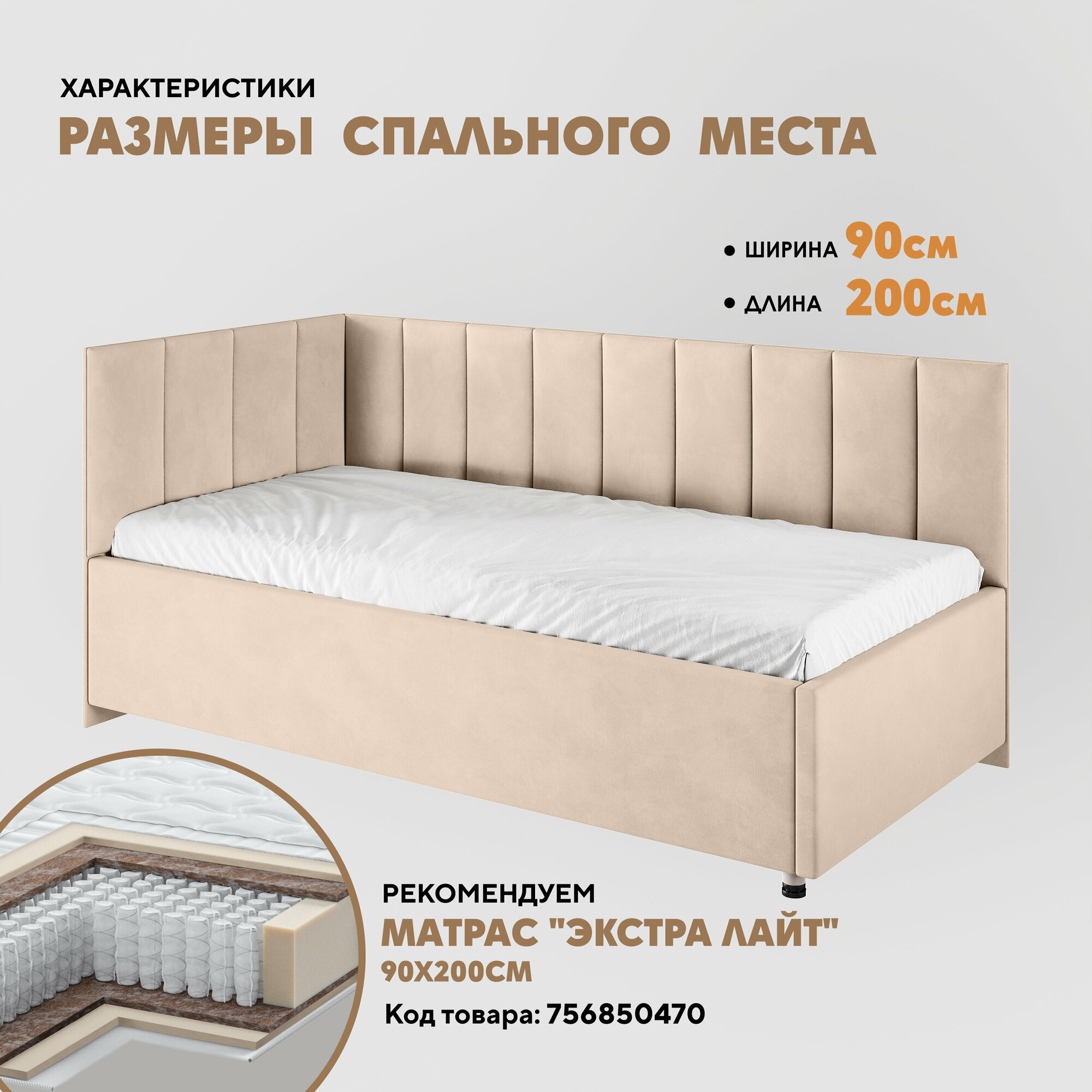 Кровать "Герда Литл" 90х200 (Velutto 18) угол слева информация: