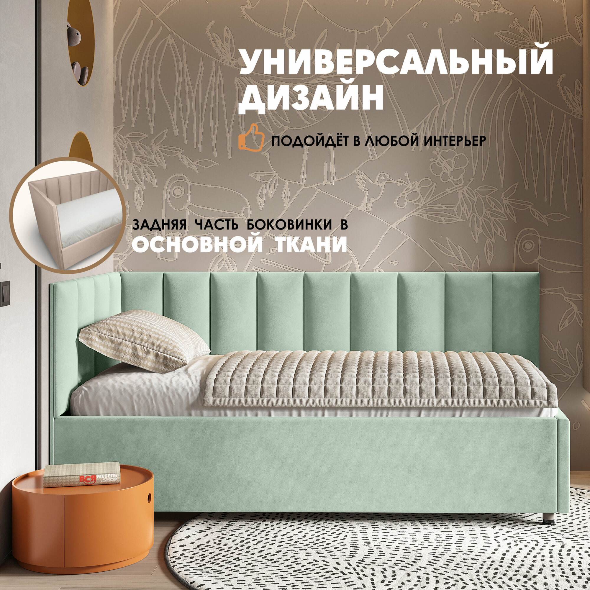 Мягкий диван кровать детская/ подростковая софа с подъемным механизмом асти 90х200 правая