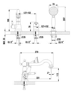 Смеситель на борт ванны Lemark Villa (LM4845B) информация: