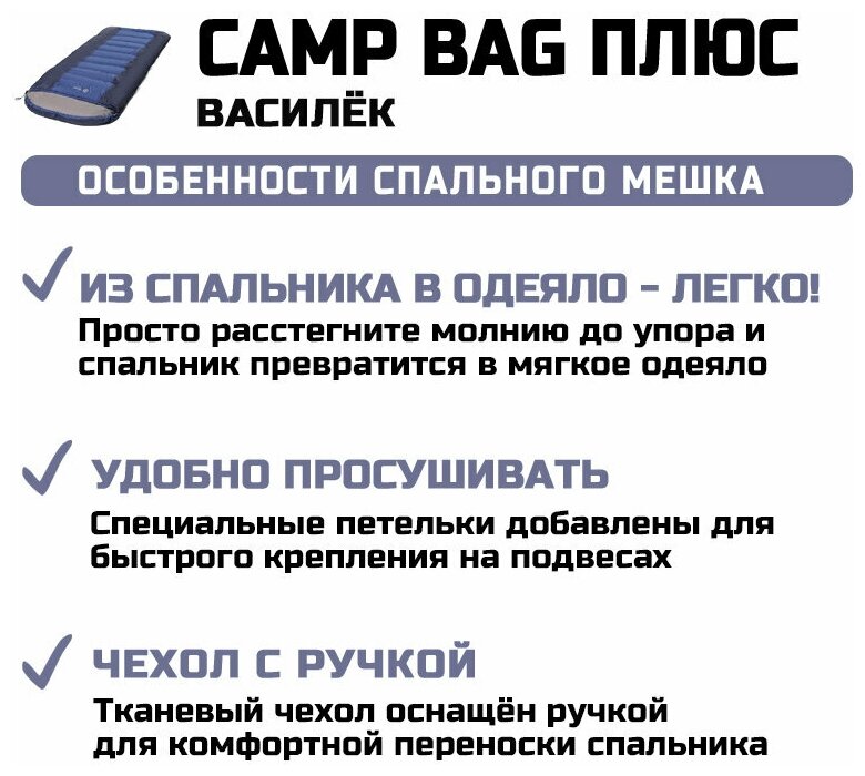 Отзывы на Спальный мешок одеяло Prival Camp bag плюс синий/василек, t extr -5 °С, 220х95, молния справа