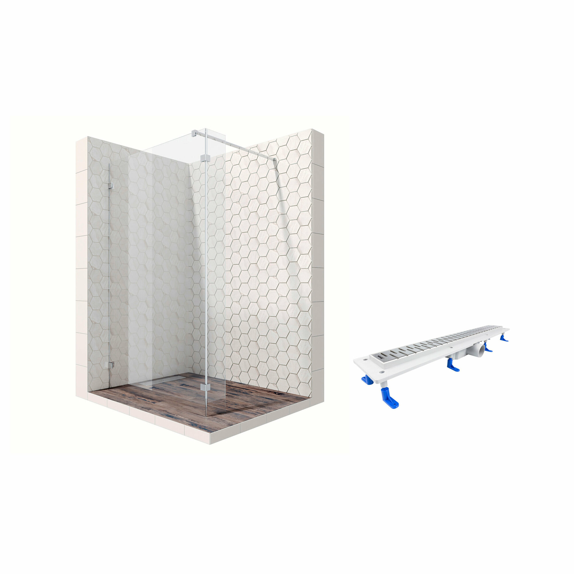 Комплект душевого ограждения (перегородка) со свободным входом с линейным трапом Ambassador Walk-in 15031106-ST13, с EasyClean, 100 х 25 см