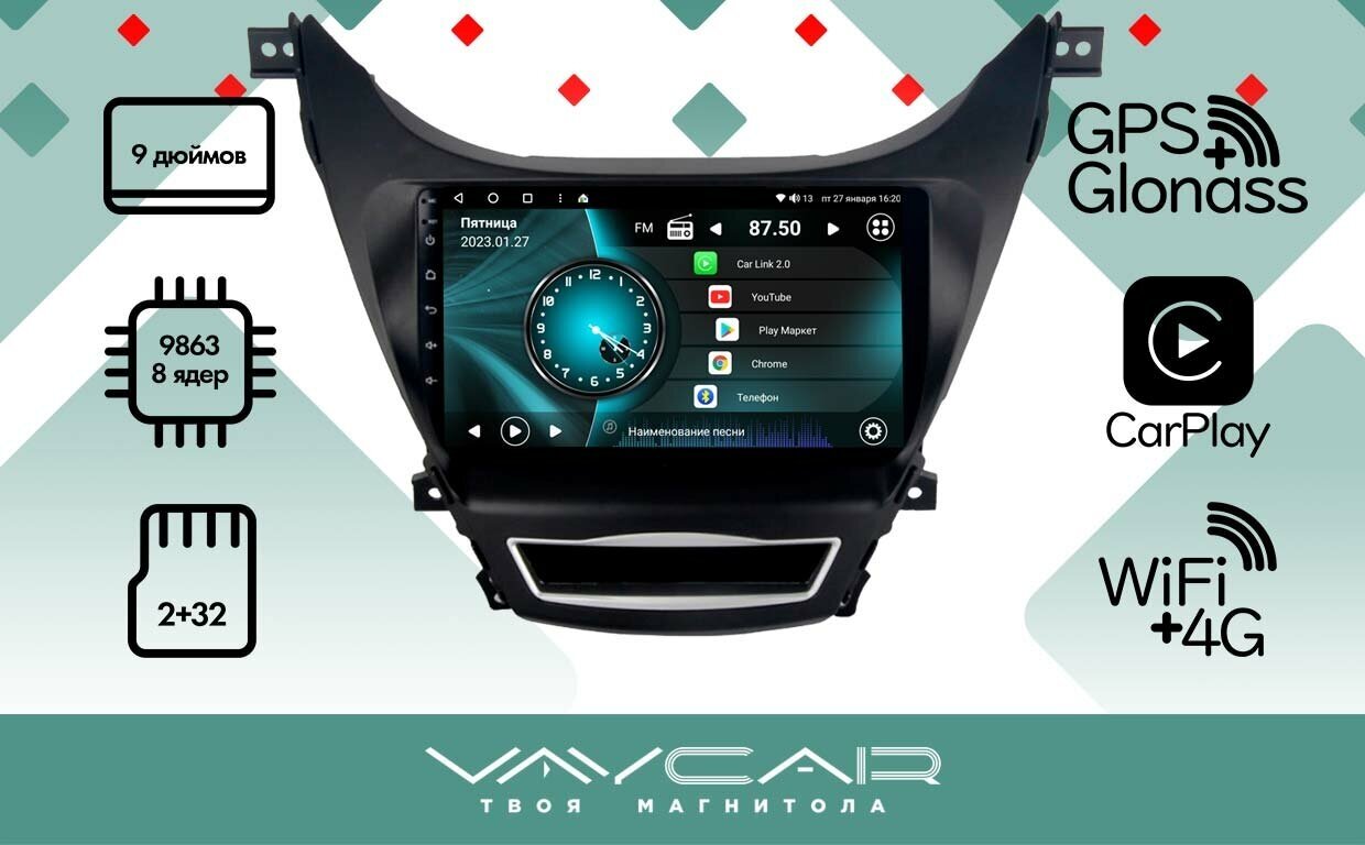 Магнитола Vaycar 09V2 для HYUNDAI Elantra 2011-2013 (Андроид, 2+32, 8 ядер, WiFi, BT, 4G, GPS, QLED 9") информация: