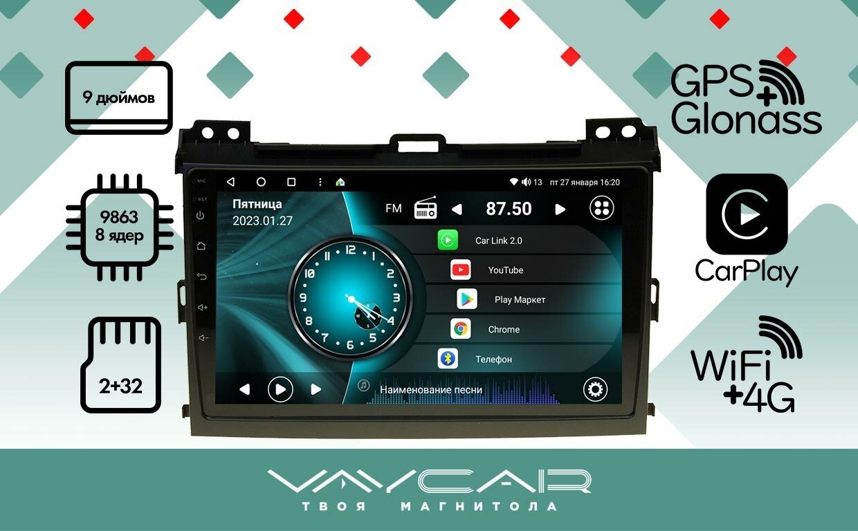 Магнитола Vaycar 09V2 для TOYOTA Prado 120 2002-2009 (Андроид, 2+32, 8 ядер, WiFi, BT, 4G, GPS, QLED 9") информация: