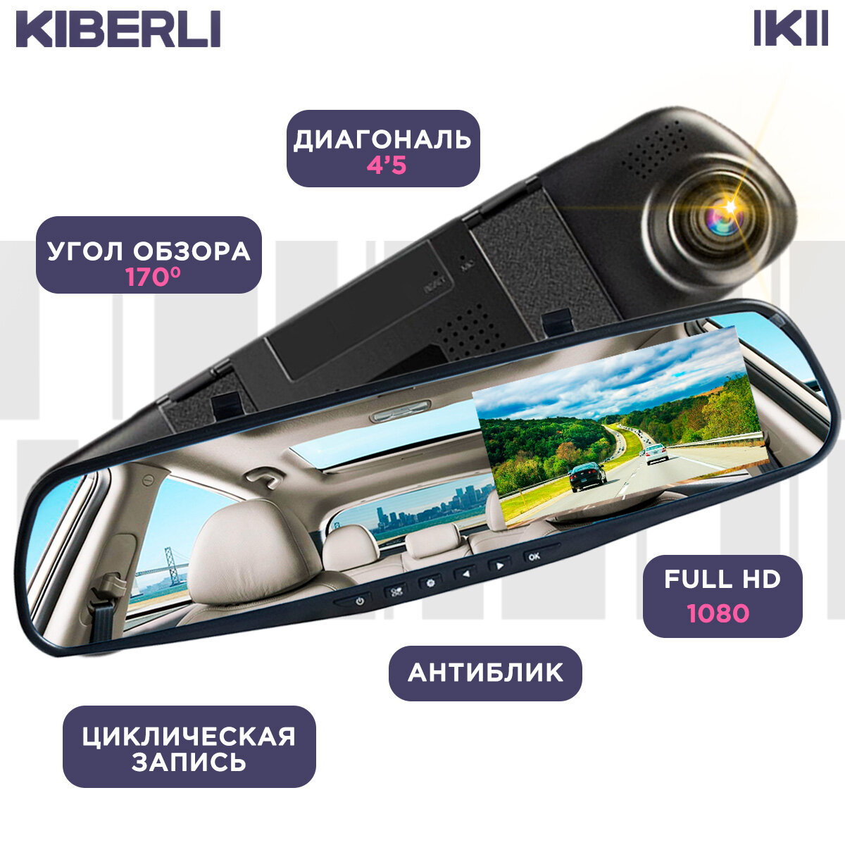 Отзывы на Видеорегистратор зеркало 2 камеры датчик движения G-сенсор KIBERLI LI 5, TF-карты на 32 Гб автовизитка